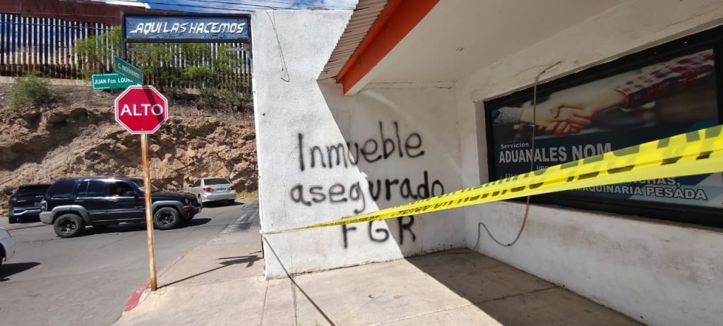 En las oficinas donde fue detectado el narcotúnel quedaron las leyendas que indican que es un inmueble incautado por las Fiscalía General de la República.